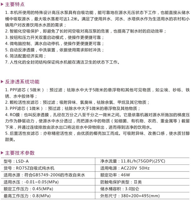 75G自吸式全自动纯水机
